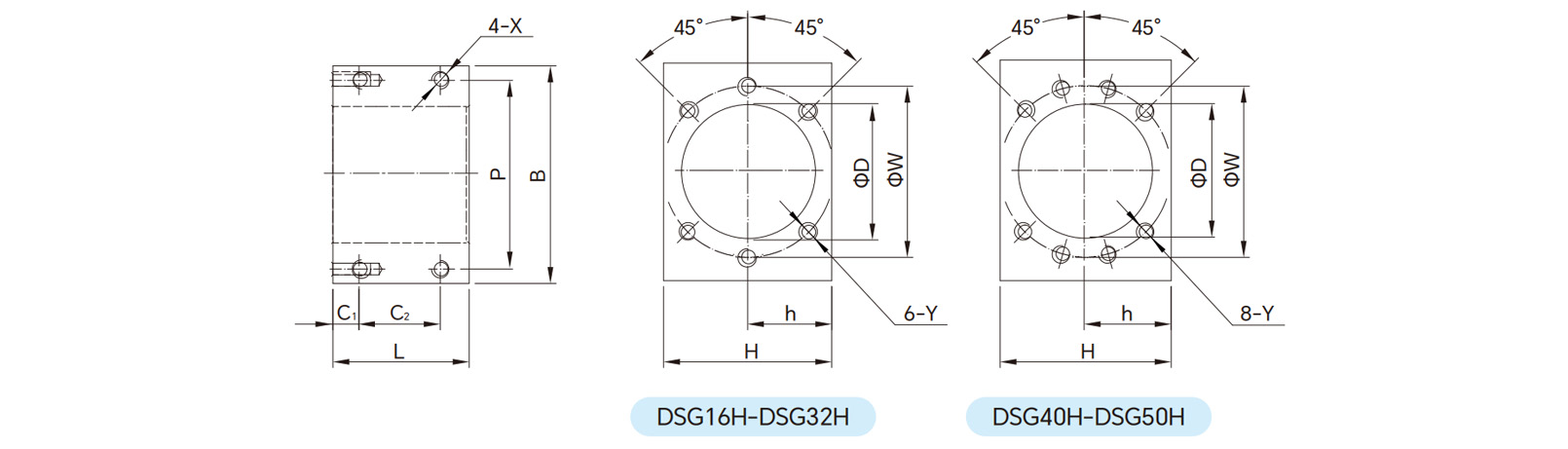 Matching Ball Screw: One model covers multiple leads at the same shaft diameter (e.g., DSG16H is compatible with SFU1605/1610/1616).
